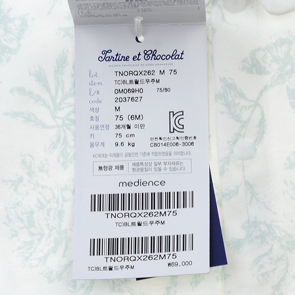 세탁방법 및 취급시 주의사항 : 삶지 마십시오. 기계건조 금지. 주의! 작은 부품이 탈락되면 삼킬 수 있음.