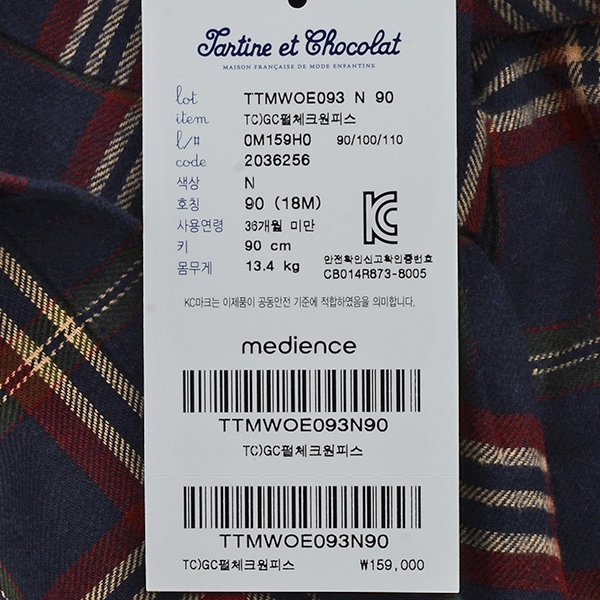 품명 및 모델명 : [쇼콜라]TC)GC펄체크원피스