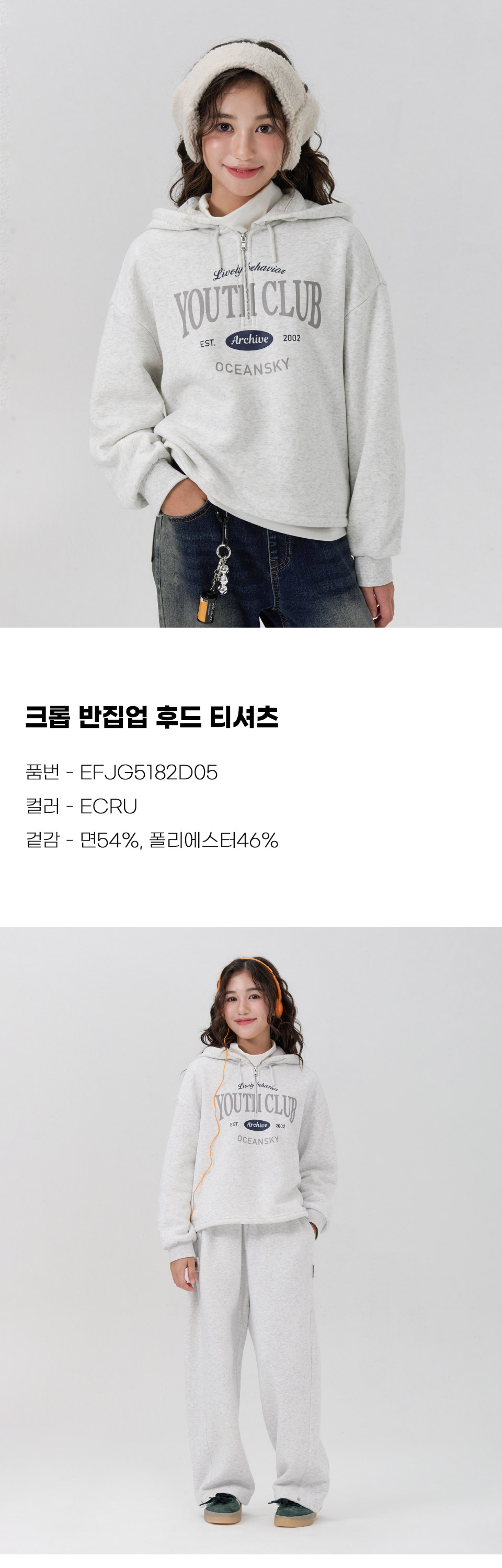 보리보리/오션스카이 여아 후디 그래픽 기모 반집업티셔츠