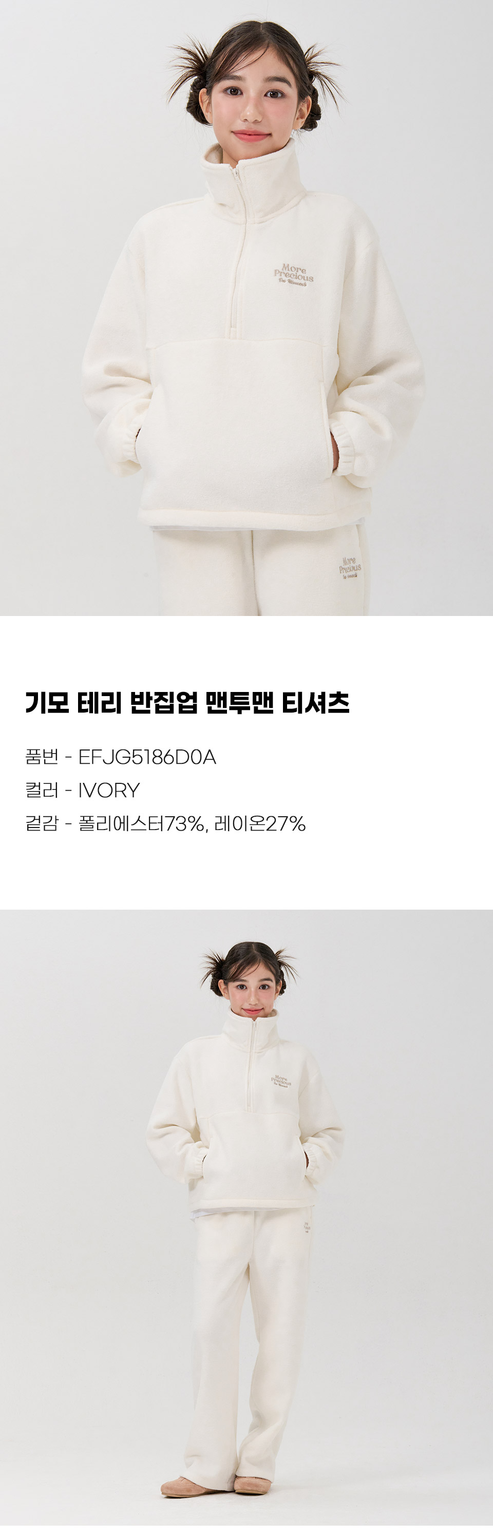 보리보리/오션스카이 여아 하이넥 반집업 테리 기모 맨투맨