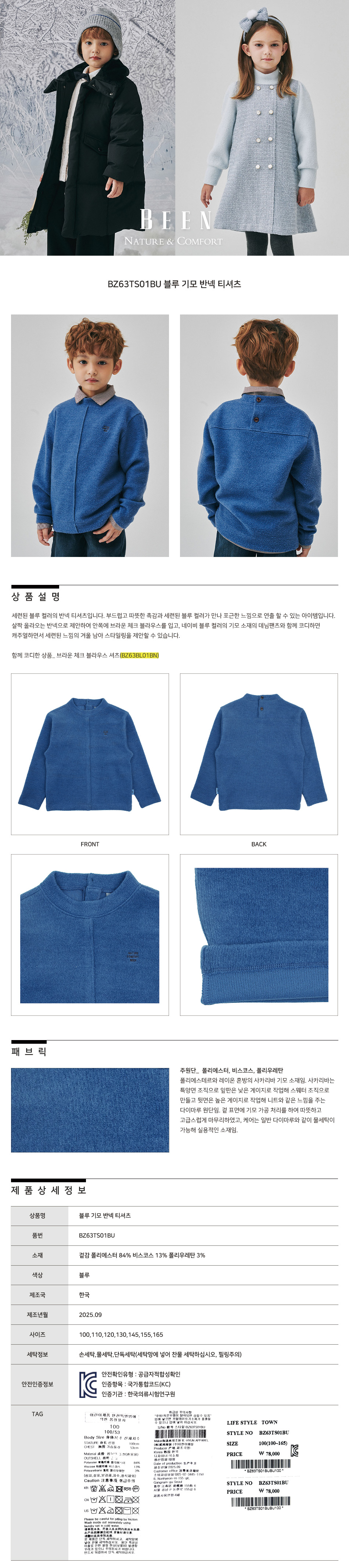 대구백화점 빈블루 기모 반넥 티셔츠(BZ63TS01BU)
