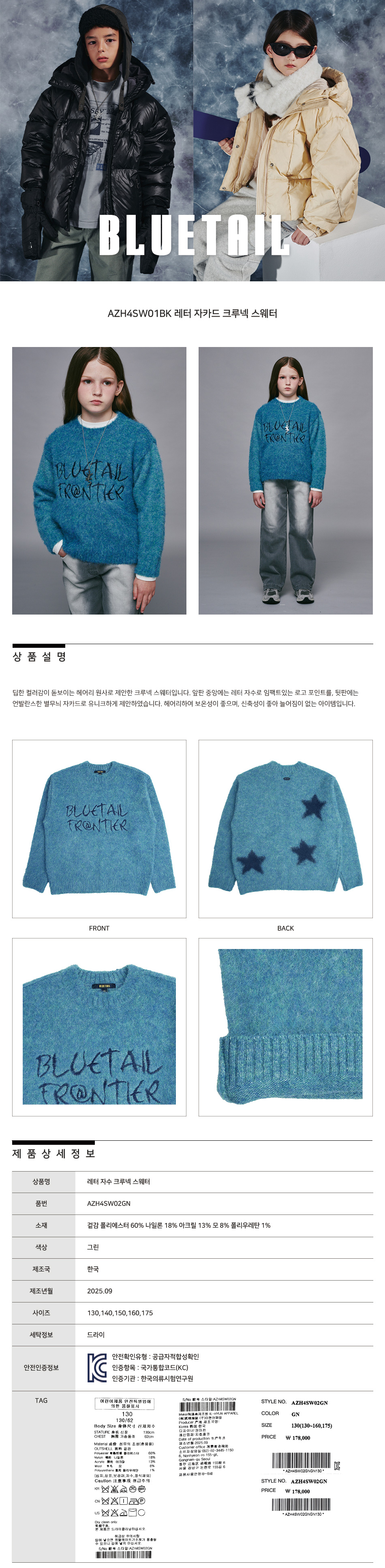 제품소재 : 겉감 폴리에스터 60% 나일론 18% 아크릴 13% 모 8% 폴리우레탄 1%