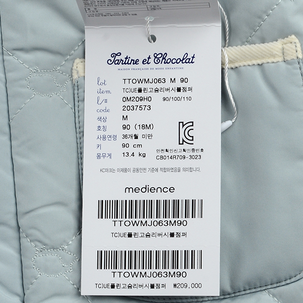 제품소재 : 겉감,안감 폴리에스터 100% 배색 면 100% 충전재 폴리에스터 100%