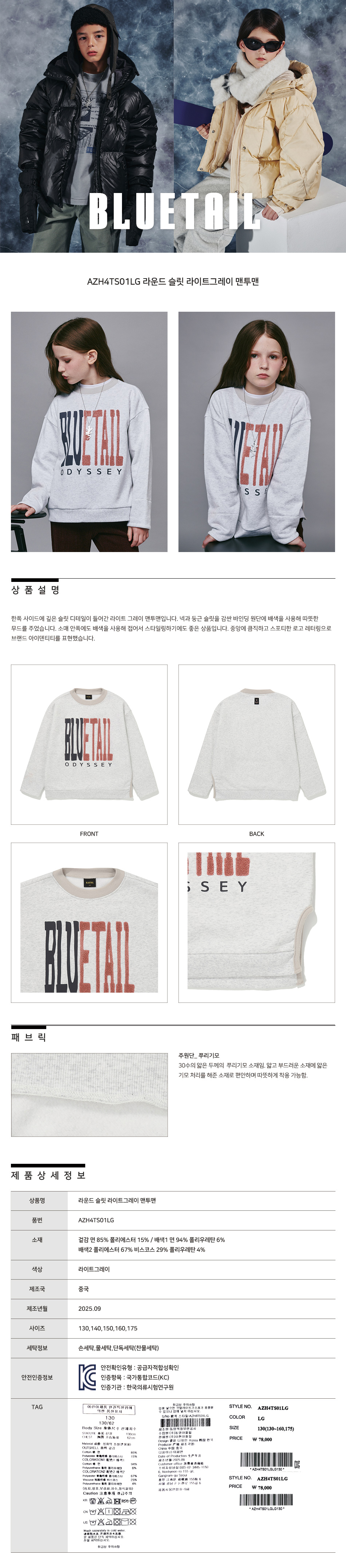 품명 및 모델명 : AZH4TS01LG 라운드 슬릿 라이트그레이 맨투맨