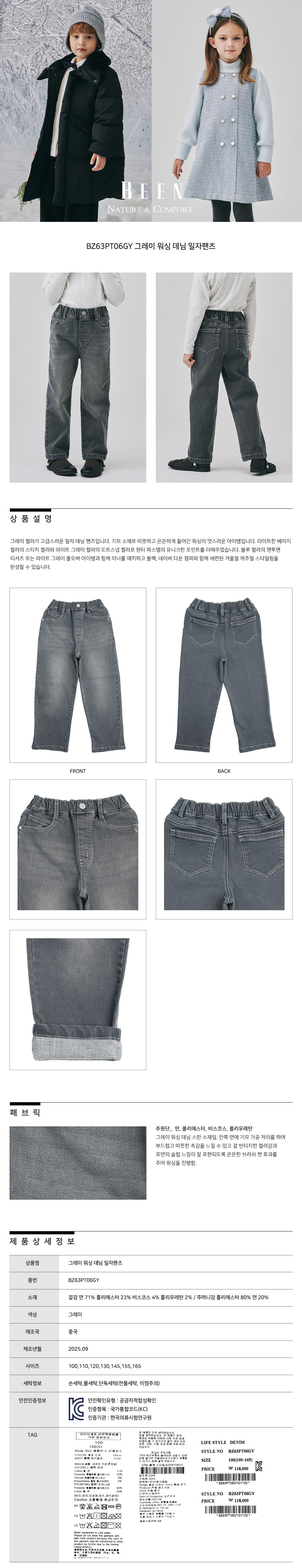 품명 및 모델명 : BZ63PT06GY 그레이 워싱 데님 일자팬츠