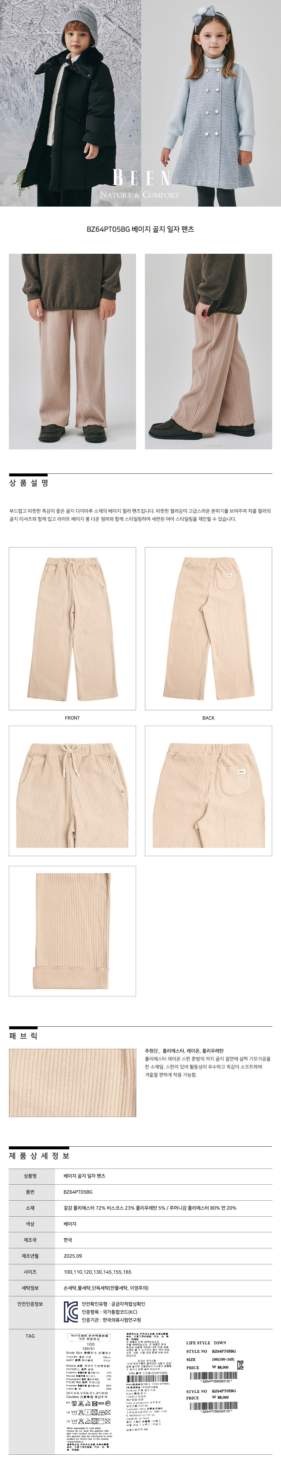 품명 및 모델명 : BZ64PT05BG 베이지 골지 일자 팬츠