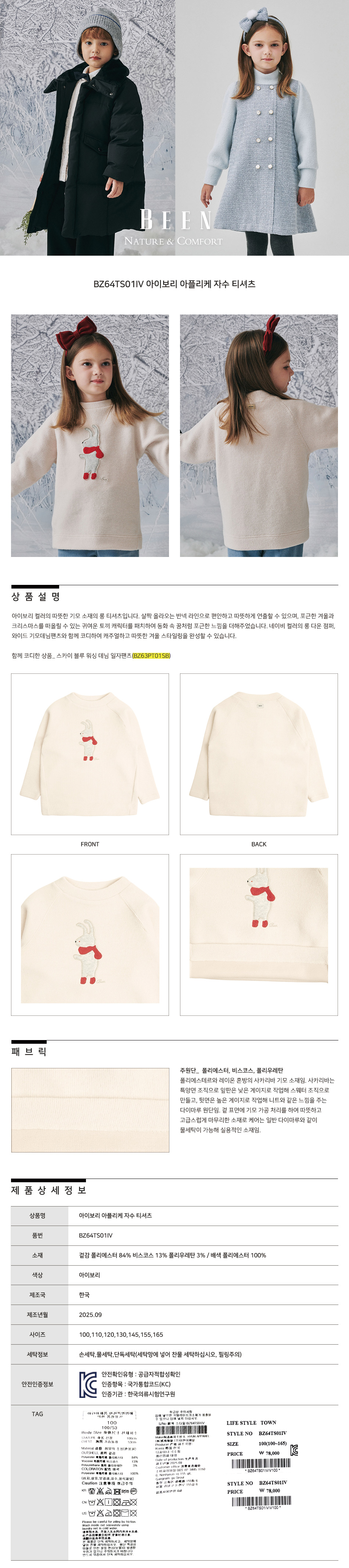 제품소재 : 겉감 폴리에스터 84% 비스코스 13% 폴리우레탄 3% / 배색 폴리에스터 100%