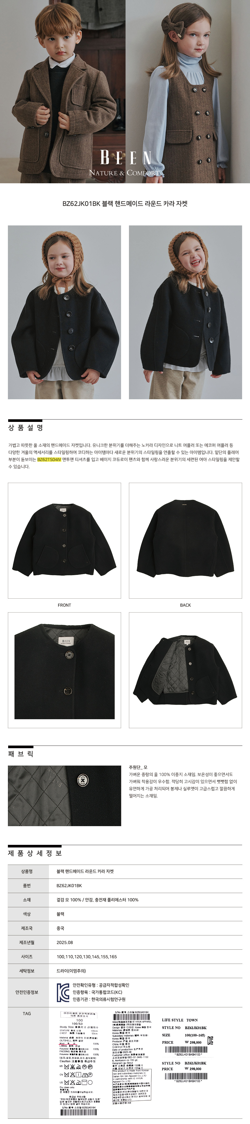 제품소재 : 겉감 모 100% / 안감, 충전재 폴리에스터 100%