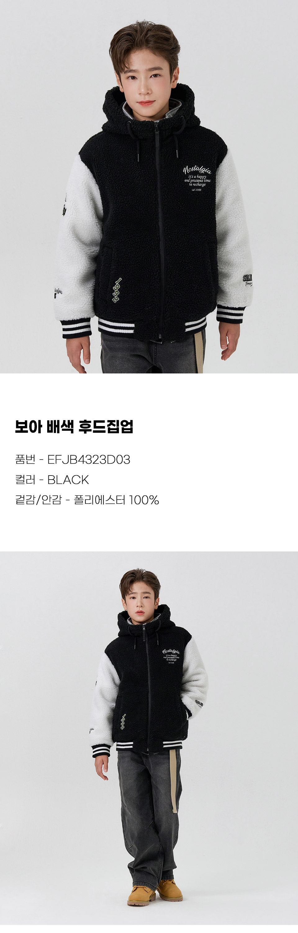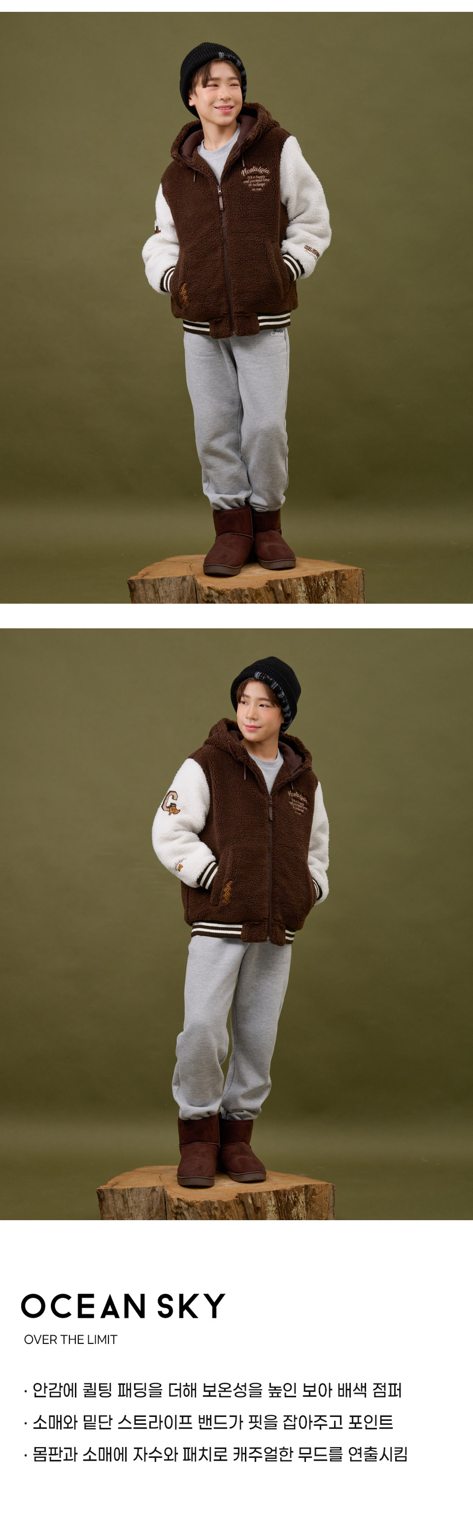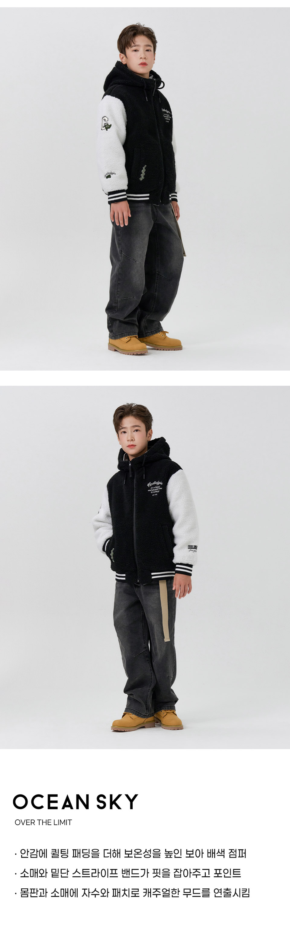 보리보리/오션스카이 남아 바시티 배색 양털점퍼