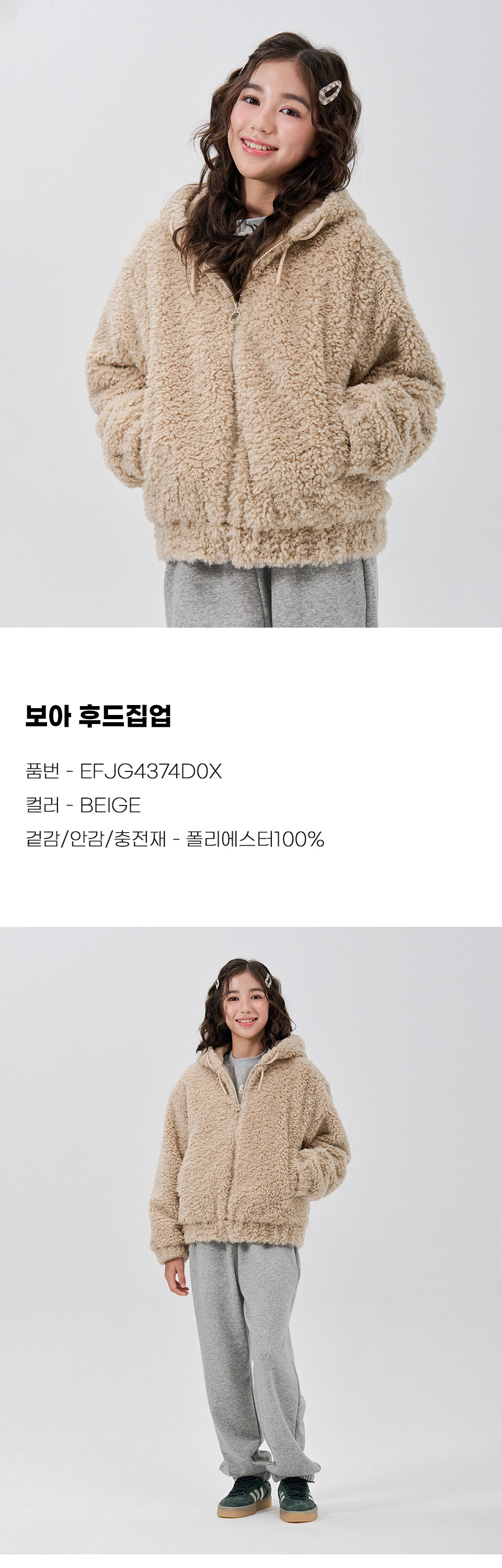 보리보리/오션스카이 여아 포근 베이직 보아퍼 후드점퍼
