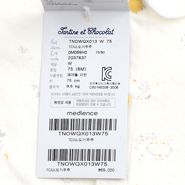 세탁방법 및 취급시 주의사항 : 삶지 마십시오. 기계건조 금지. 주의! 작은 부품이 탈락되면 삼킬 수 있음.