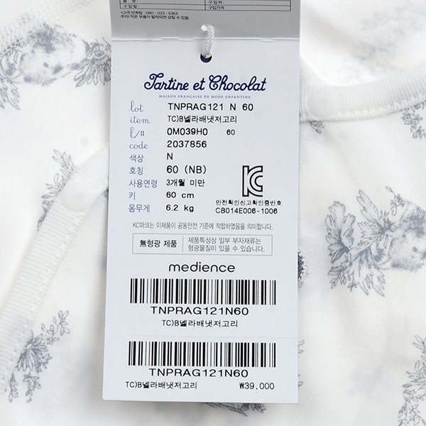 품명 및 모델명 : TC)B넬라배냇저고리N