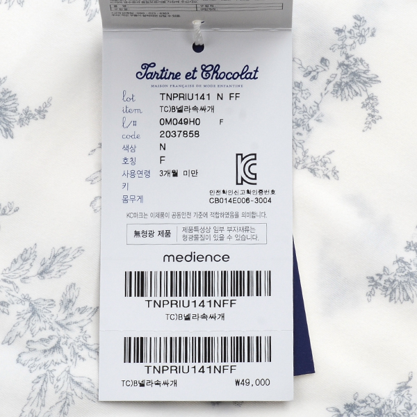 세탁방법 및 취급시 주의사항 : 삶지 마십시오. 기계건조 금지. 주의! 작은 부품이 탈락되면 삼킬 수 있음.