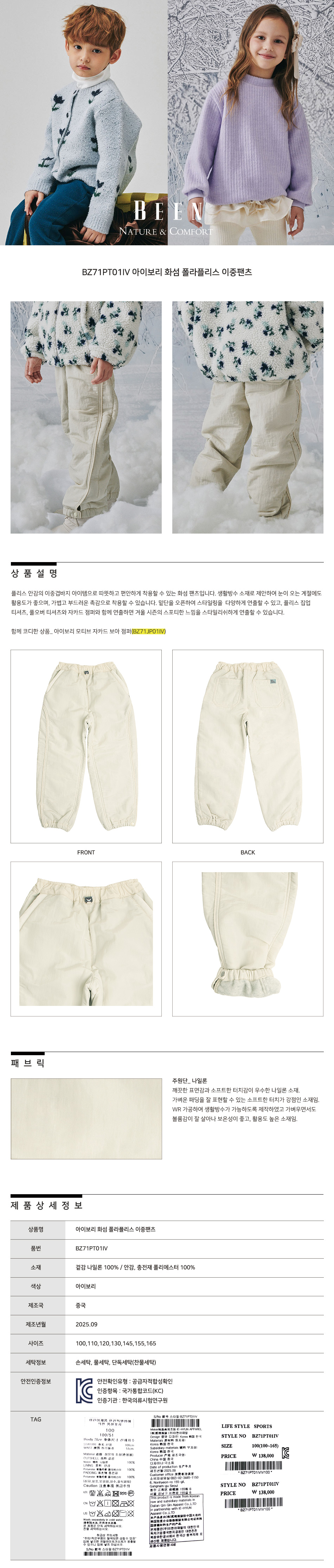 품명 및 모델명 : BZ71PT01IV 아이보리 화섬 폴라플리스 이중팬츠