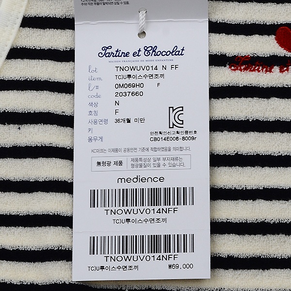 세탁방법 및 취급시 주의사항 : 삶지 마십시오, 기계건조 금지, 주의! 작은 부품이 탈락되면 삼킬 수 있음