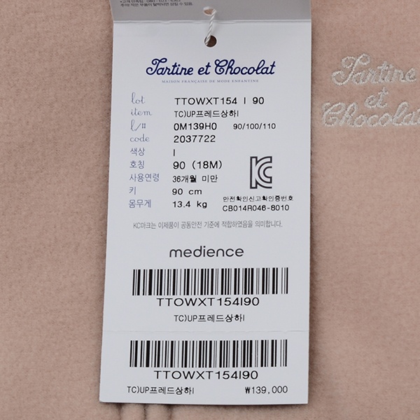 세탁방법 및 취급시 주의사항 : 단독세탁, 삶지 마십시오, 기계건조금지, 주의! 작은 부품이 탈락되면 삼킬 수 있음