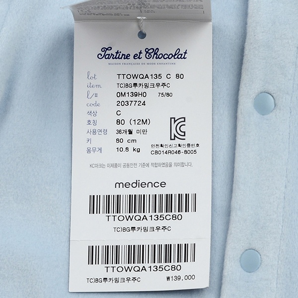 세탁방법 및 취급시 주의사항 : 삶지 마십시오. 기계건조 금지. 주의! 작은 부품이 탈락되면 삼킬 수 있음.