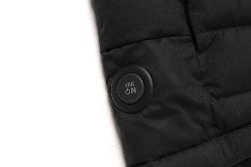 - 밑단에 2단 온도조절이 가능한 'YAK ON' 버튼으로 발열 기능 조절이 가능합니다.