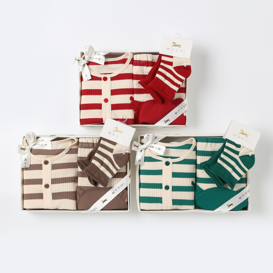 포인트있는 컬러감과 양말 2족셋트 구성으로 귀여움을 더합니다. 남여 구분 없이 입히기 좋은 아이템입니다. 12M전체 트임18M 사이즈 부터는 앞단추 디자인입니다.*양말은 원사이즈 입니다.(7-8)