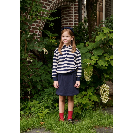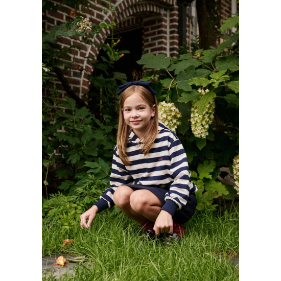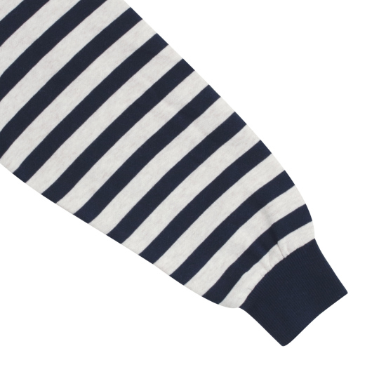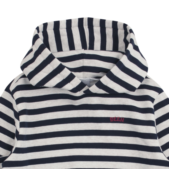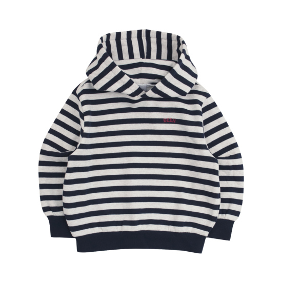 네이비 컬러의 스트라이프 패턴이 멋스러운 후드