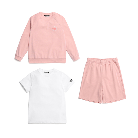 - 오버핏 '맨투맨 + 반팔티 + 5부팬츠' 3PCS 세트 구성 상풉입니다.