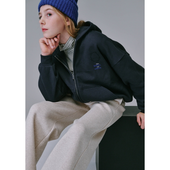 차콜 컬러의 크롭한 캥거루 포켓 후드 점퍼입니다. 캥거루 포켓에 주름을 주어 자연스런 볼륨을 살려주었고 크롭한 기장으로 입었을 때 이너와 레이어드 코디를 보여주기 좋은 아이템입니다. CONNECTION(연결) 테마를 연상하게 하는 나염으로 포인트를 주었습니다.