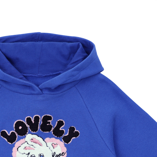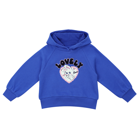 상세설명-코발트블루 컬러의 후드맨투맨티 토끼부클직자수가 포인트인 아이템입니다.