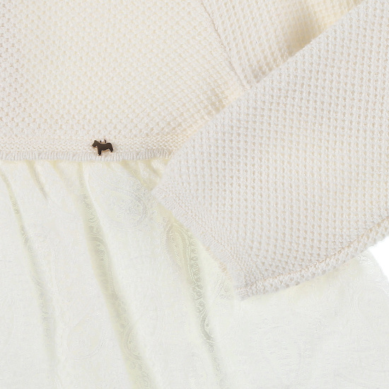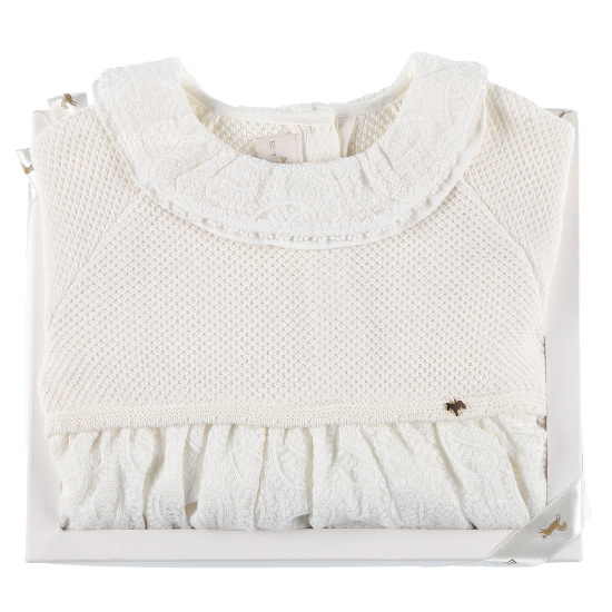고급스러운 아이보리 컬러의 니트에페이즐리 레이스 배색으로 사랑스러운 원피스레이스로 포인트를 주어 드레스 대용으로 착용하기 좋은 실용적인 상품의 여아 겨울 원피스 입니다. 배송메세지란에 메모를 남기시면 선물포장 됩니다.