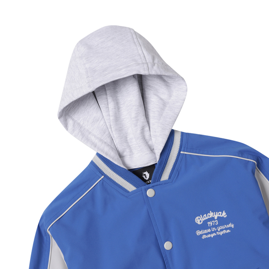 - 레트로무드가 트렌디함과 조합된 바시티자켓