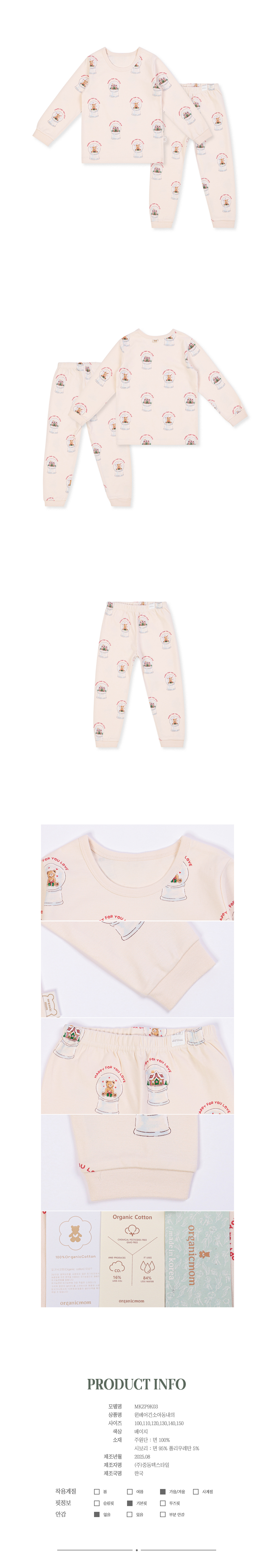품명 및 모델명 : [오가닉맘]윈베어긴소아동내의 (MKZP9K03)