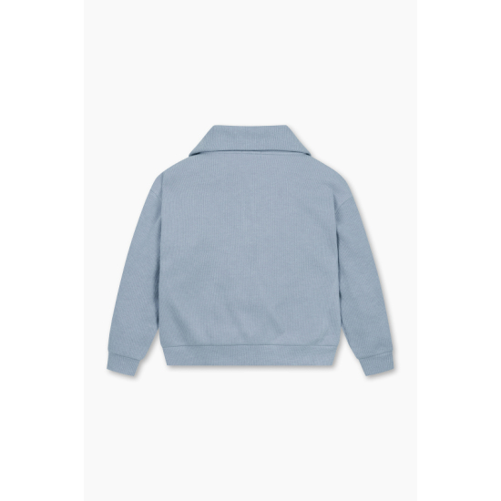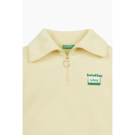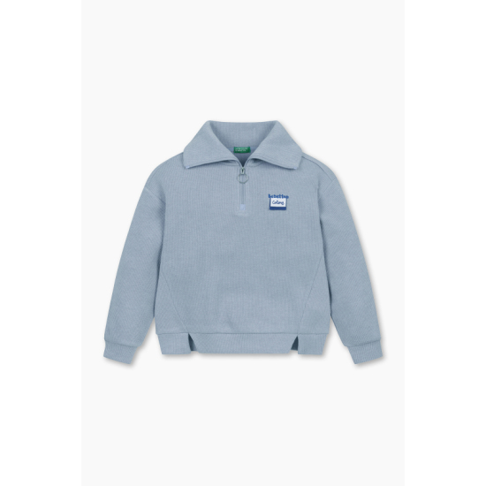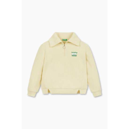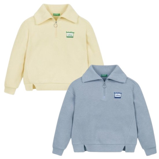 베네통키즈만의 컬러감이 돋보이는 니트 라이크 소재의 하프집업 맨투맨.