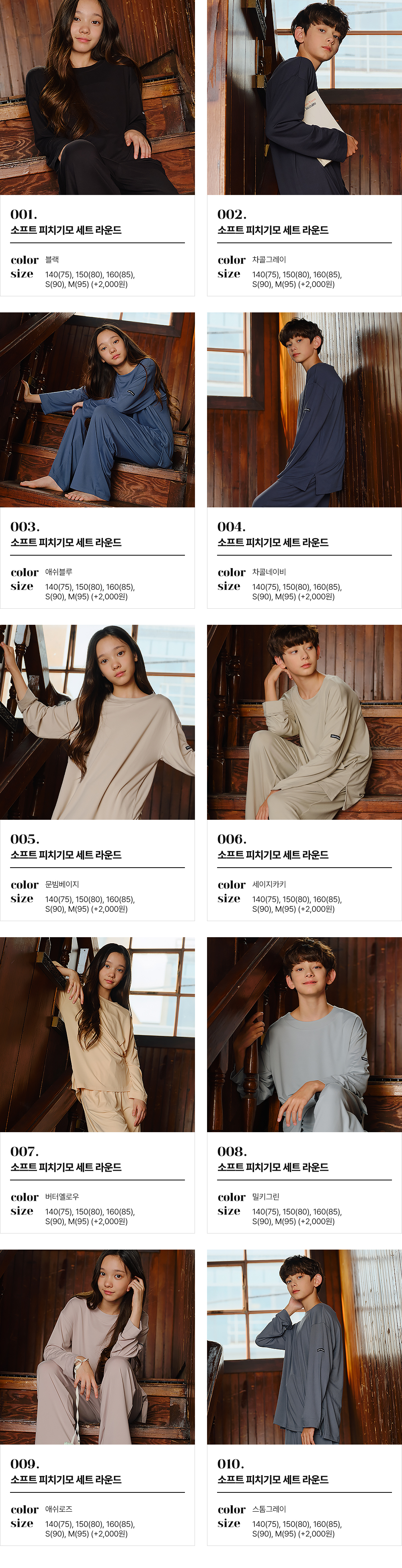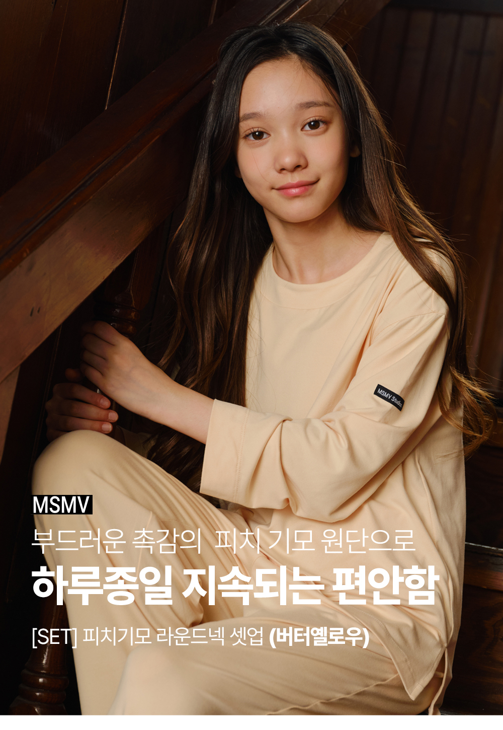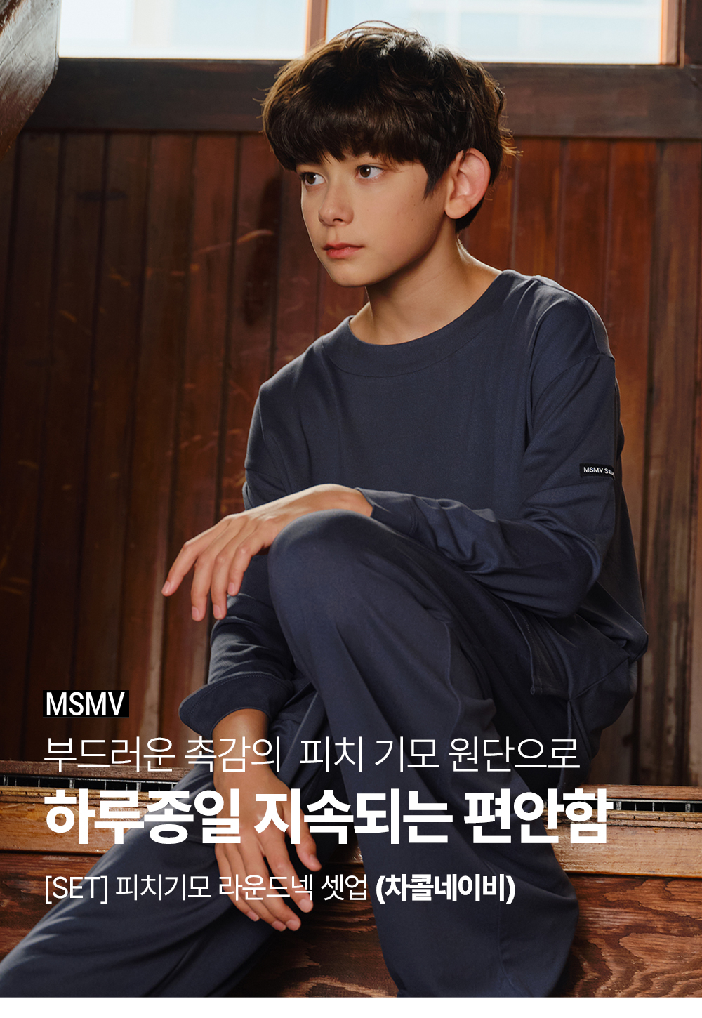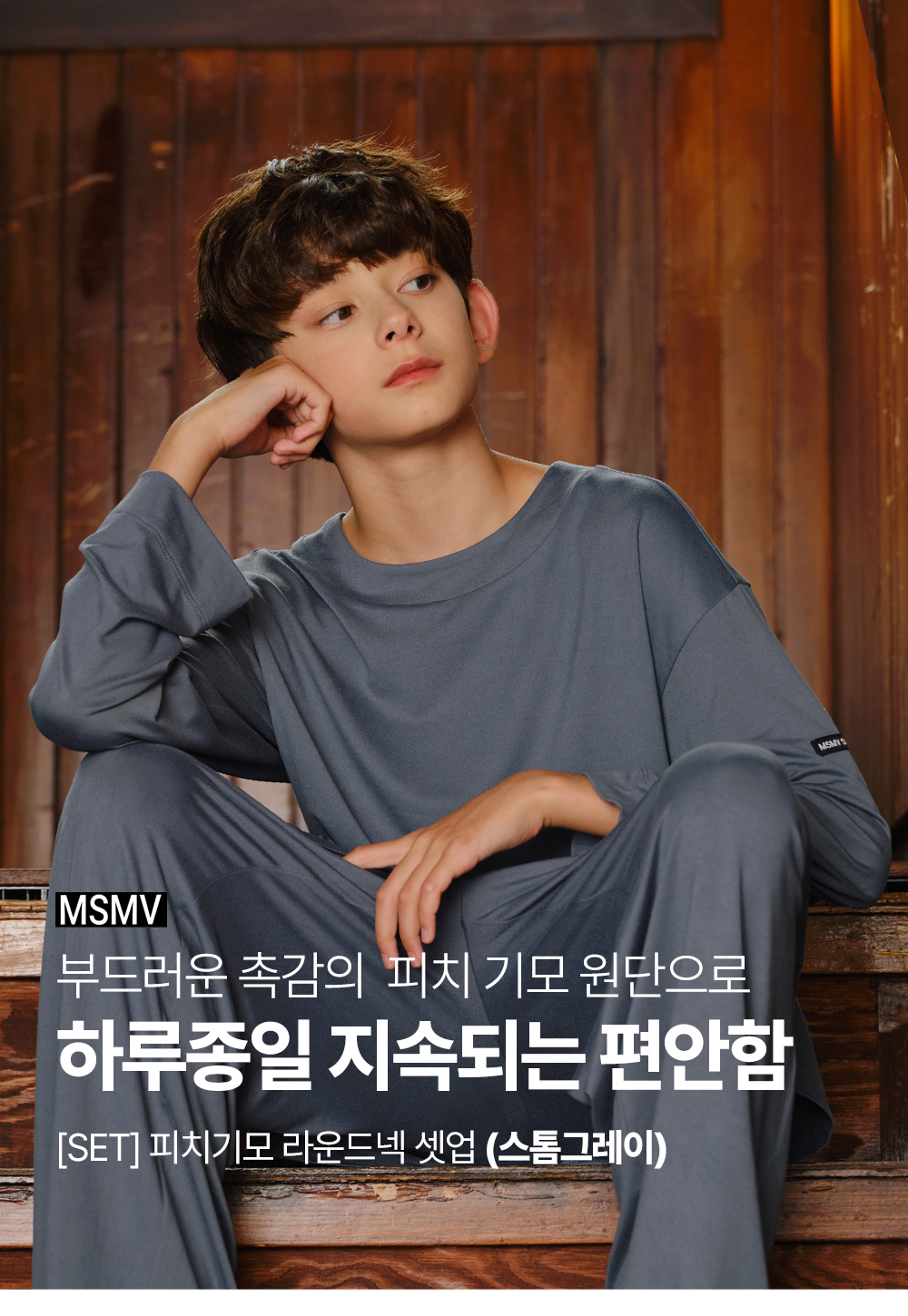 MSMV 피치기모 아동 주니어 잠옷 초등학생 파자마 실내복 라운드세트 10COLORS