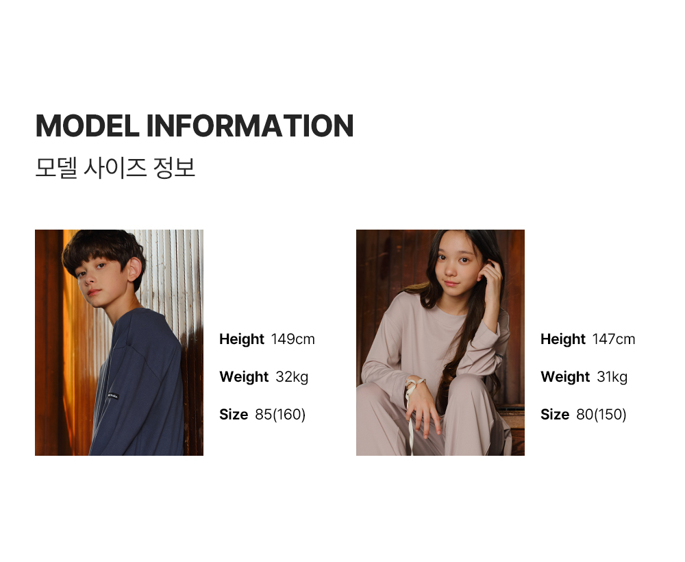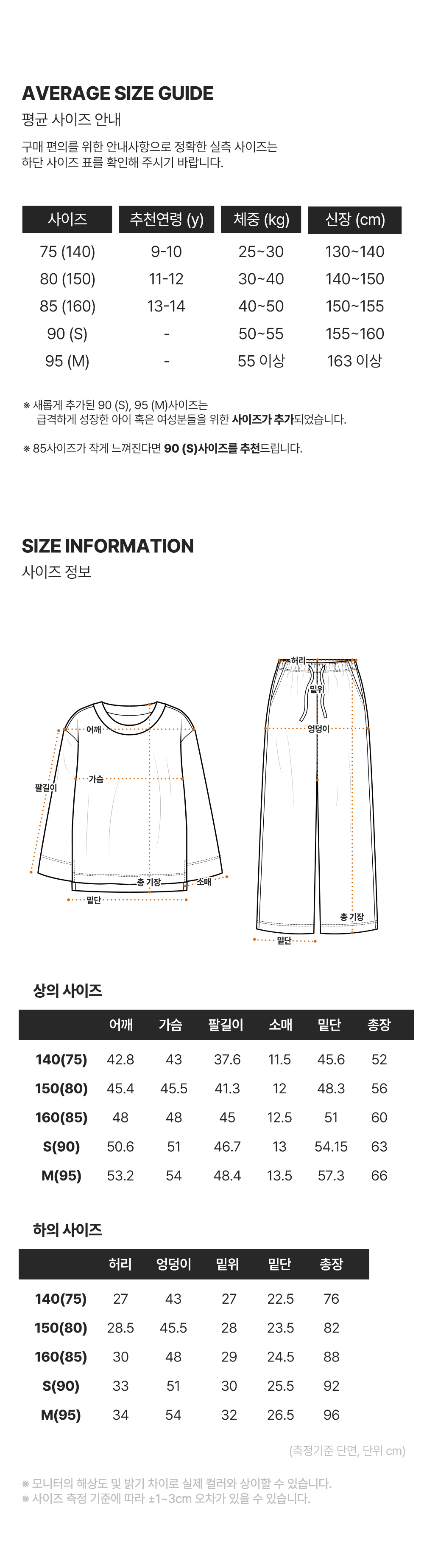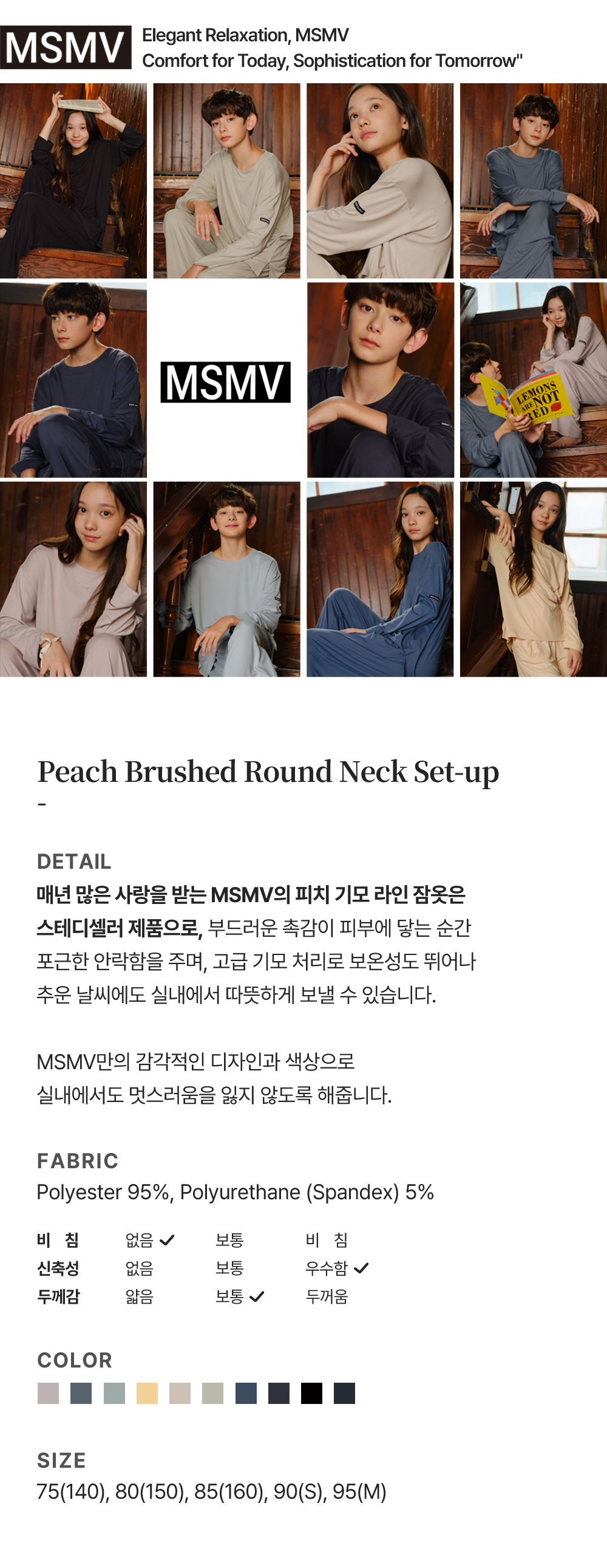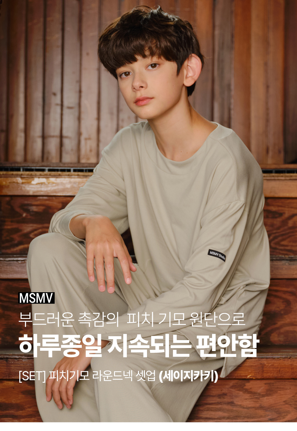 MSMV 피치기모 아동 주니어 잠옷 초등학생 파자마 실내복 라운드세트 10COLORS