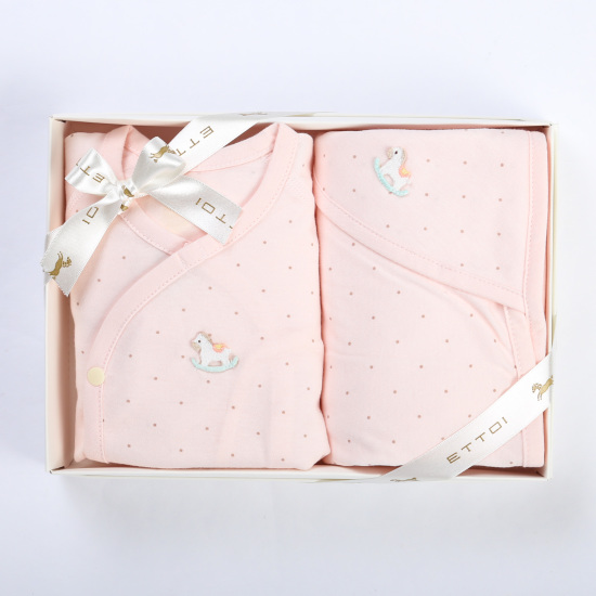 부드럽고 고급스러운 80수 양면 소재에 잔잔한 작은 도트 나염에 작고 귀여운 말 자수 와펜으로 포인트를 준 배내저고리와 셋트 구성인 부드러운 속싸보 로 출산 선물하기 좋은 아이템입니다.