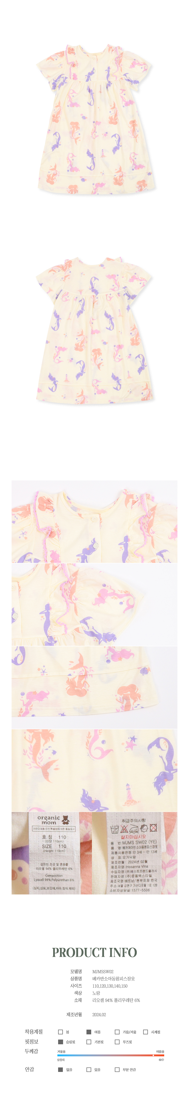 품명 및 모델명 : [오가닉맘]베카반소아동원피스잠옷(MJMSSW02)