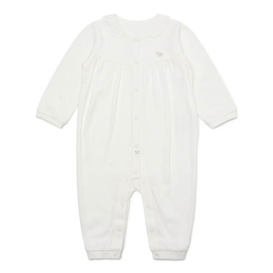 부드러운 60'S 이중직 아일렛자가드 소재로 만든 COZY COTTON 라인의 우주복입니다.