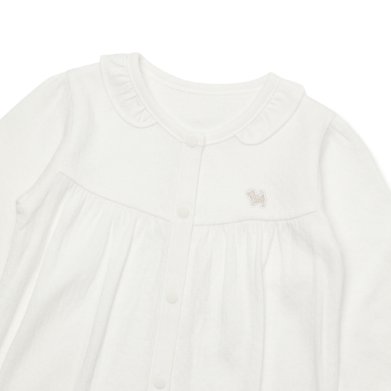 넥 프릴포인트로 여아스러운 디테일을 완성한 아이템입니다.