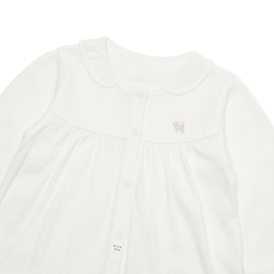 넥 프릴포인트로 여아스러운 디테일을 완성한 아이템입니다.