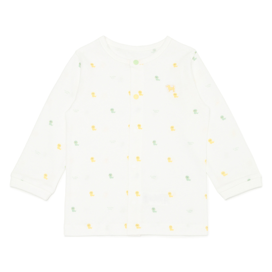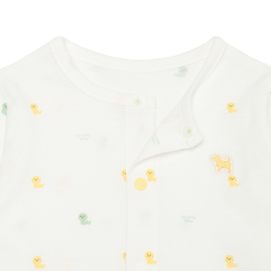 뱀 캐릭터 비비패턴에 강아지 자수를 매치한 깨끗한 스타일의 아이템입니다.