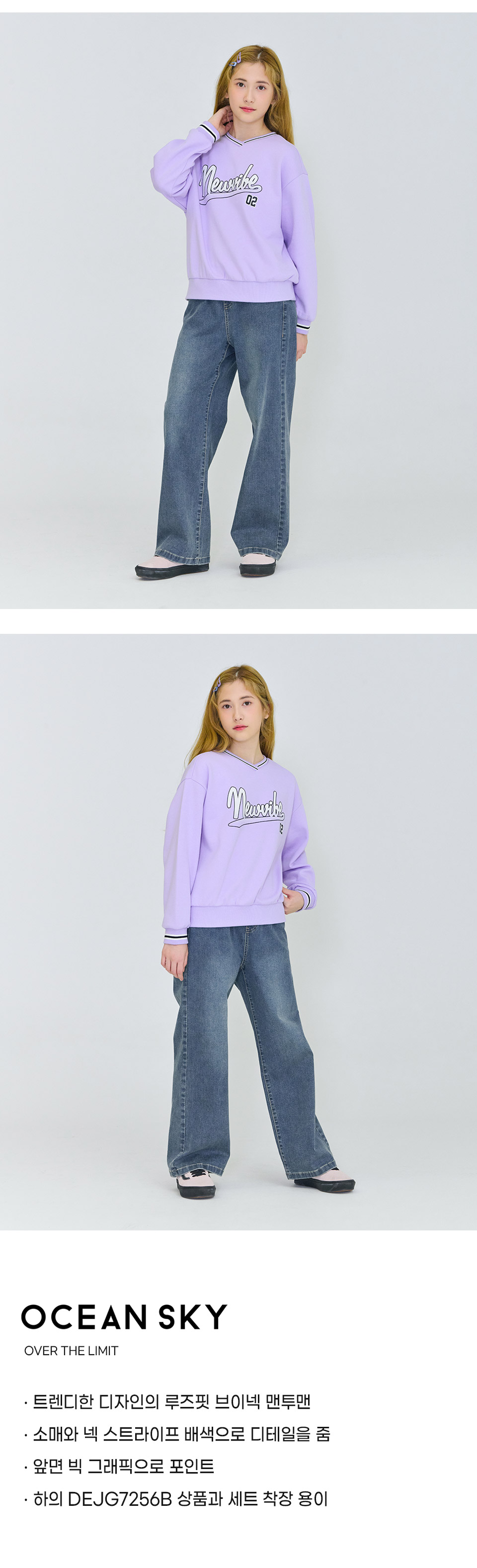 (현대Hmall)오션스카이 2color여아 브이넥 그래픽 포인트 맨투맨 T-shirt
