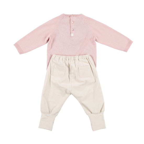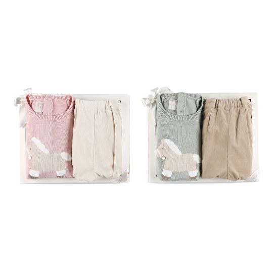 귀여운 안달말 니트 자가드의 포근한 컬러감의 유아 상하복편안한 핏의 면 니트 상의와코듀로이 밴딩 팬츠로 허리안쪽에는 밴드 조절이 가능한데일리 골지 스타일로 활동하기 좋은 유아 바지가 세트 구성입니다.(민트&핑크 컬러중 택1 상품 입니다.) 배송메세지란에 메모를 남기시면 선물포장 됩니다.