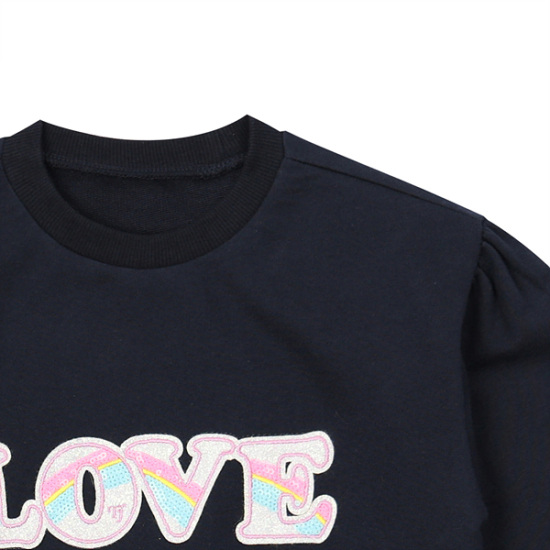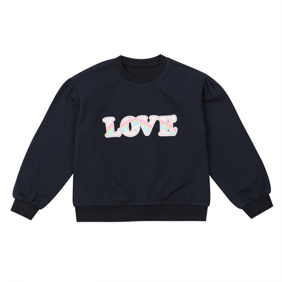 데일리 아이템으로 입기 좋습니다. 앞판의 LOVE 아트웍이 화사한 느낌을 줍니다. 네이비와 아이보리(T41KKT040) 두 칼라로 구성되어있습니다.