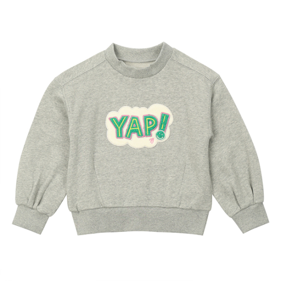 상세설명-스트치 장식과 다트 장식으로 라인에 포인트를 준 티셔츠입니다. 앞에 골지 소재와 퍼 APP 자수로 컬러 포인트를 준 스타일입니다.