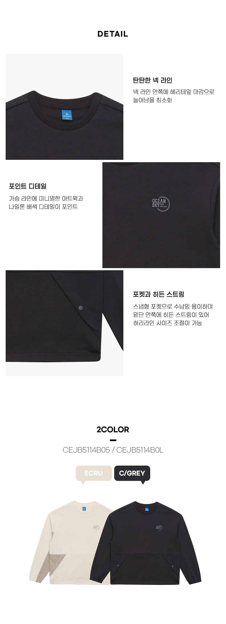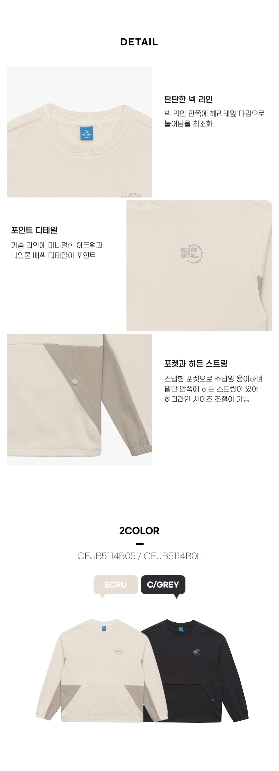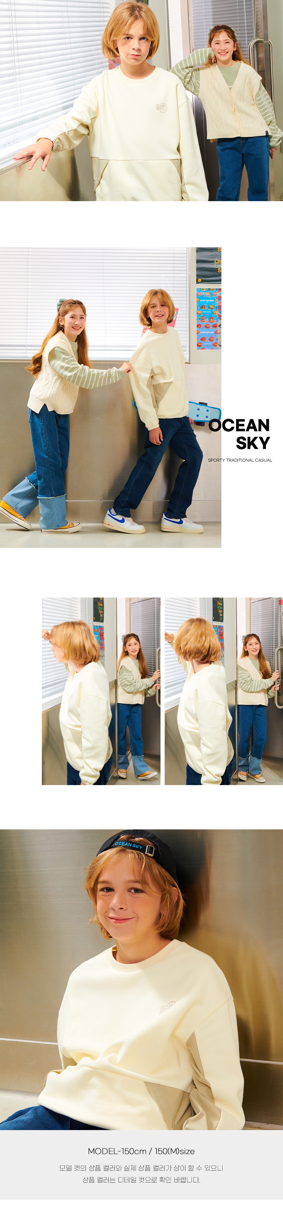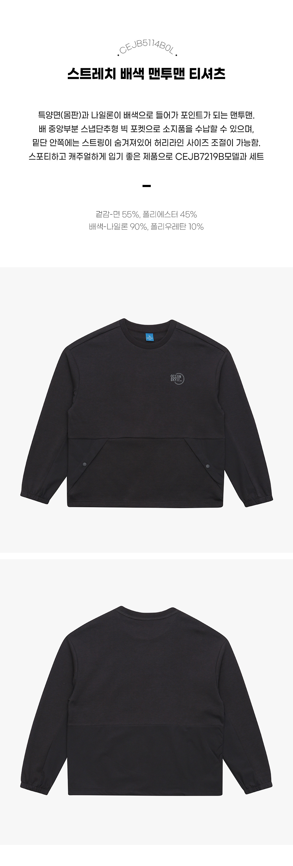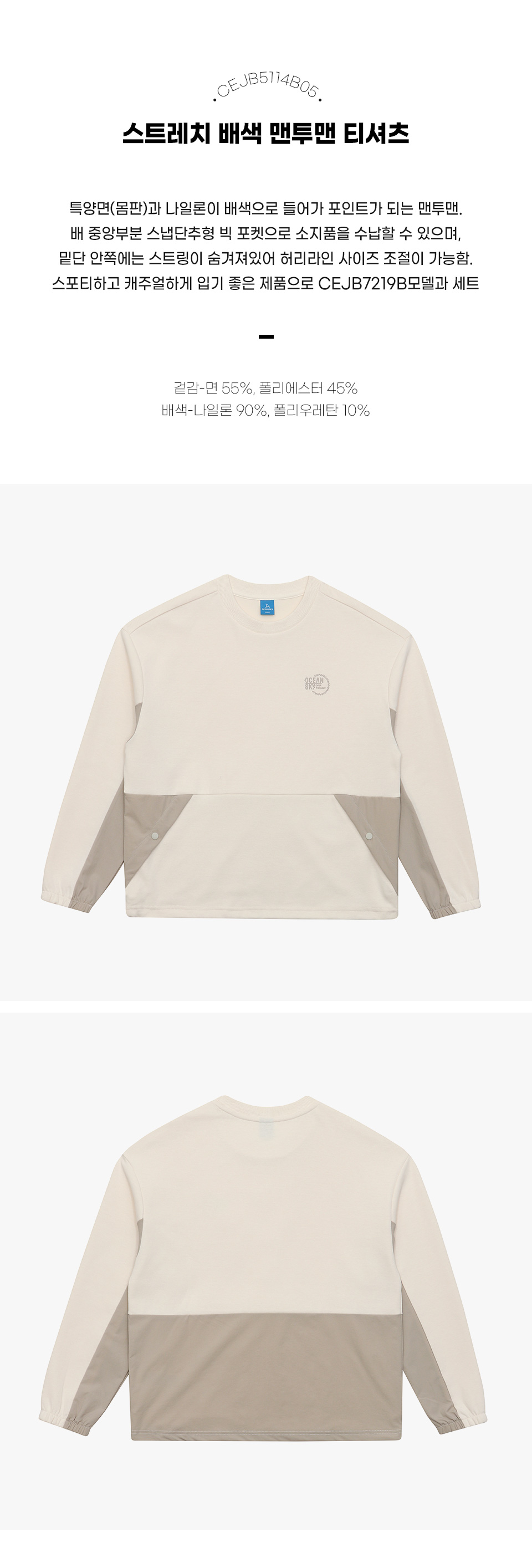 보리보리/오션스카이 남아 스트레치 배색 맨투맨 T-shirt