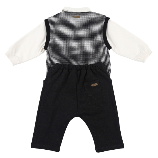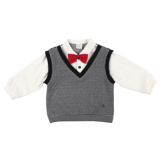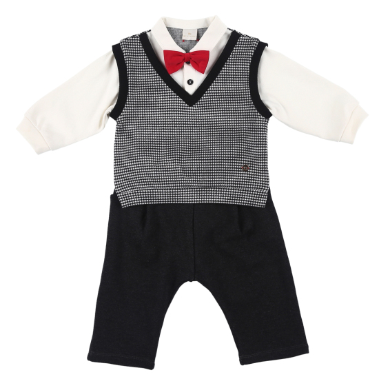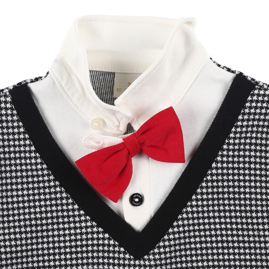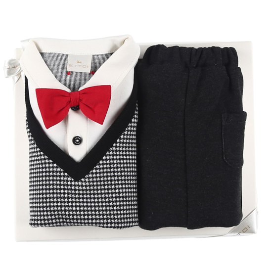 카라 티셔츠에 하운드투스 패턴의 조끼를 레이어드한 느낌의 상하복클래식하고 세련된 느낌을 주는 스타일 입니다.등원룩이나 파티룩으로 활용하기 좋은 캐주얼 정장 스타일편안한 핏의 면 바지에 허리조절이 가능하며카라에 넥타이는 탈부착이 가능 합니다. 배송메세지란에 메모를 남기시면 선물포장 됩니다.
