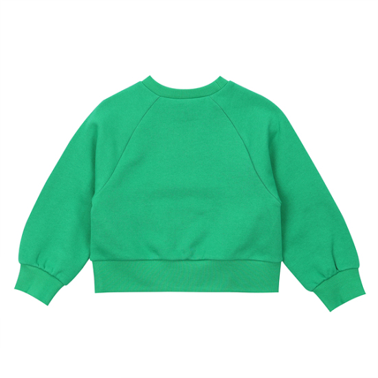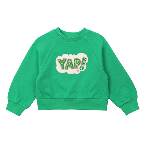 상세설명-라글란 소매 크롭 티셔츠로 귀여운 스타일의 티셔츠입니다. 앞에 플리스 패치와 스팽글 로고 자수가 포인트로 컬러감을 살려 준 스타일입니다.