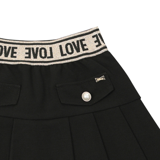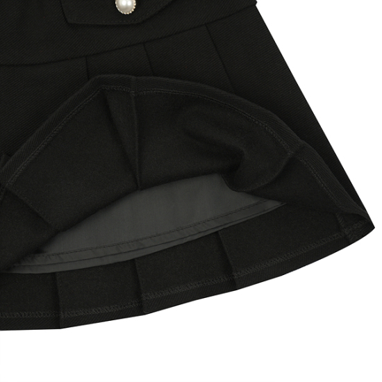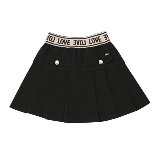 상세설명-다이마루 기모 사선지 소재를 사용한 주름 스커트입니다. 허리 로고 펄 밴드로 트렌디한 라인을 살려주었고, 후다포켓과 진주 단추 장식으로 포인트를 주었습니다.