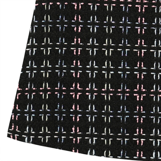 상품설명-깔끔한 블랙 트위드 JP/SK 스타일로 블루, 핑크 펄사가 은은하게 격자로 있어 컬러감을 살린 스타일입니다. 블랙 벨벳 파이핑 장식과 핑크 단추로 포인트를 주었습니다.