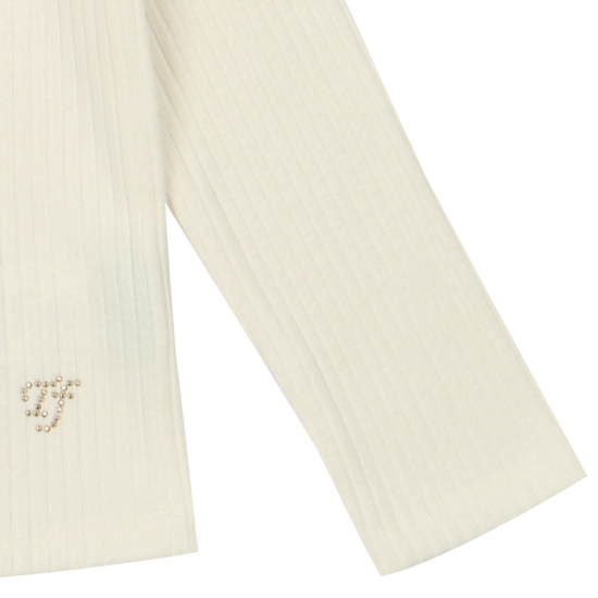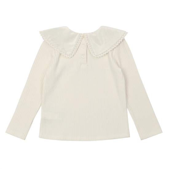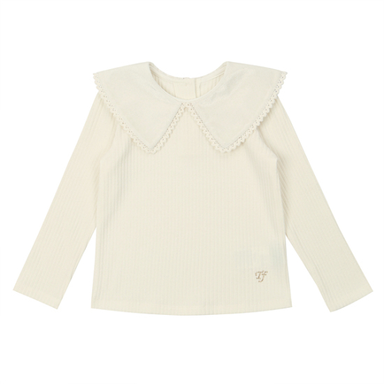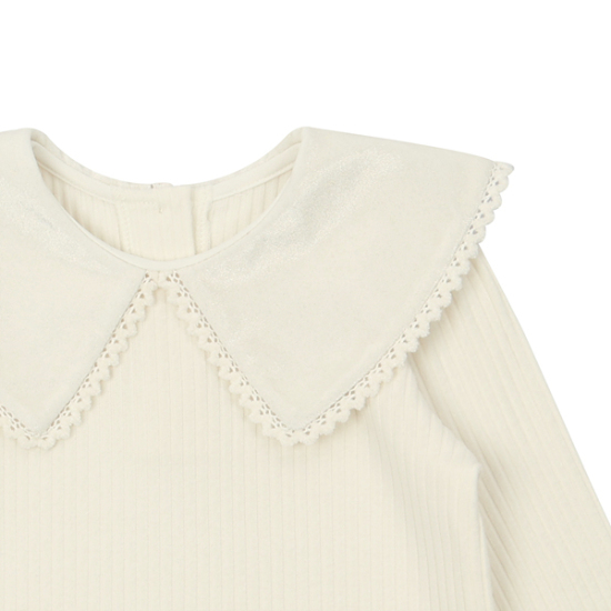 상세설명-골지 소재 기본티에 펄벨벳 카라, 카라끝 TAPE 장식으로 포인트를 준 티셔츠입니다. JP/SK, 주름 스커트 등과 코디하기 좋은 기본 스타일 티셔츠입니다.