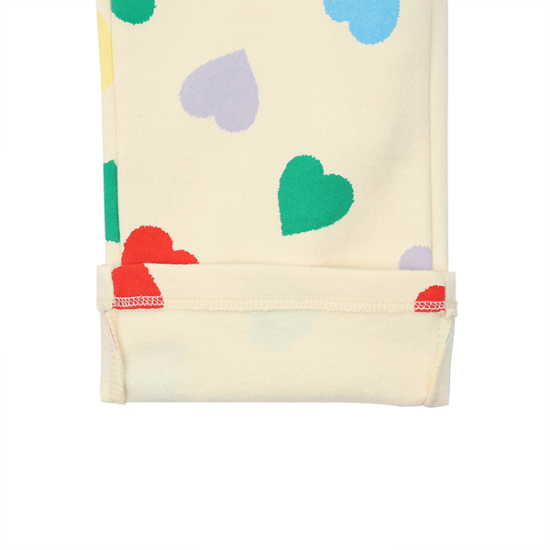 상세설명-멀티 컬러의 하트 전판 나염이 포인트로 들어간 트레이닝복입니다. 하트 와펜으로 귀여운 포인트를 주었습니다. 양기모가 들어간 부드러운 쭈리 원단을 사용하여 겨울에 따뜻하게 입을 수 있는 세트아이템 입니다.